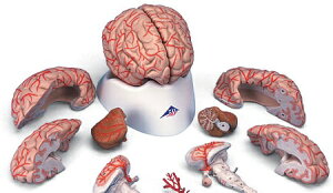 正中矢状断された脳モデルは脳表面の動脈の様子や脱着可能な脳底動脈を見る事ができます。 左右両半球とも分解単位は次のとおりです。 前頭葉と頭頂葉 側頭葉と後頭葉 脳幹 小脳 キーカード(説明書)付属 スタンド付 02dw09 【1105...