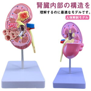 腎臓内部の構造を理解するのに最適なモデルです。医療現場での患者さんへの説明用に使える可能です!解剖学による生徒への説明や医療現場での患者さんへの説明用に使える模型です。 サイズ総高さ23cmサイズについての説明模型高さ16cm 総