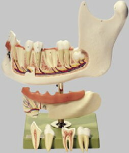 約3倍大、ソムソープラスチック製、 6分解。スタンド台付 取り外せる歯根有り。犬歯と第1大臼歯 は取り外し可能。第2大臼歯は虫歯を表す。 高さ: 34cm、幅: 34cm、奥行: 18cm 重量 1.6kg 【1105送料無料-s】■...