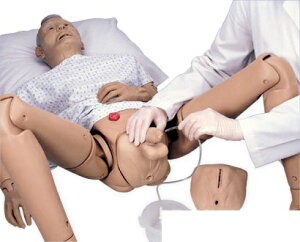 一台で導尿法と人工肛門ケアの両方の実習が可能です。 導尿法:男女の交換が可能な生殖器部にはモジュール式尿道弁が組み込まれ、意図しない液漏れを防ぎます。 人工肛門ケア:3個のストーマ(横筋結腸部、回腸部、恥骨上部)は伸縮性