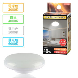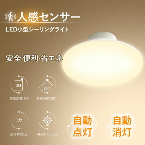 LEDシーリングライト 人感センサー 消費電力 10W 定格光束 2000lm 色温度 電球色3000K/白色4000K/昼白色5000K/昼光色6000K 入力電圧 AC100-200V 50/60HZ...