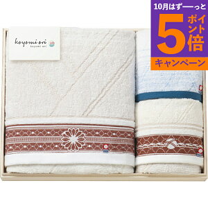 商品詳細 無漂白・無染色の綿糸を使いボーダー部分には、カラードコットンを使用した環境に優しいエコマーク取得のエコタオルです。商品内容バスタオル×1、フェイスタオル×1、ウォッシュタオル×3商品サイズ:箱280×380×60mm重量:約...