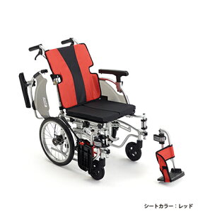 「多機能車いす カラーズ スイングアウトタイプ(介助式車いす 背折れタイプ)」は、肘掛けの跳ね上げ、足台のスイングアウト、脱着が可能な介助式の車いすです。座面幅40cm。ベッド等への移乗や、車いすからの乗り降りを楽に行うことが