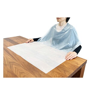●厚手の生地を大きく使用しているので装着しやすく丈夫、食べこぼしもしっかりキャッチします●使用後は首部分にミシン目があるので脱着しやすく、簡単に処理できます。●詳細サイズ:《幅×総丈》74×100cm ,入数:50枚 ,材質:ポリエチレン