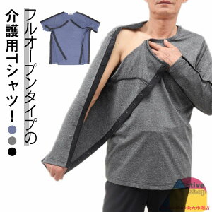 フルオープンタイプの介護用tシャツ!袖・肩・脇の下にスナップボタンが付いているので着脱が簡単です。オープンタイプなので体の不自由な方にも着せやすく常に体を清潔に保つための脱着に最適です・フルオープンタイプなので点滴時や