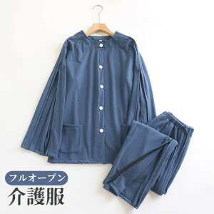 【介護士監修の快適前開きパジャマ】 現役介護士と共同開発した「前開きパジャマ」(内紐・外紐付き)、作務衣タイプのパジャマです。?上下セットの前開きデザインで着脱・ケアが容易。薄手の綿素材で通年快適にご使用いただけます。?柔らかく肌触り...