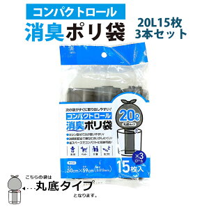 【商品名(JAN)】 コンパクトロール消臭ポリ袋 20L15枚 3本セット(4589837983640) 【商品サイズ(約)】 外形/横500mm×縦590mm、厚さ0.013mm 【内容量】 15枚×3ロール 【成分】 ポリエチレン...