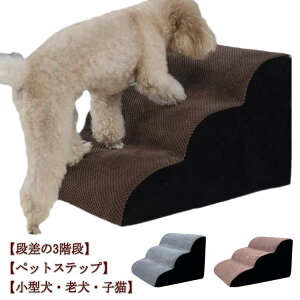 【ペットステップ】【段差の3階段】【小型犬・老犬・子猫】ペットの段差の上り下りをサポートするステップです。ゆるやかな傾斜で足が短い犬猫・小さい犬猫やシニアにも優しい。上り下りの際に気になる段幅も広めにとっており、段差も