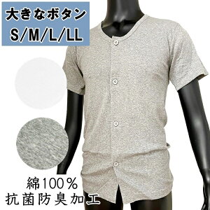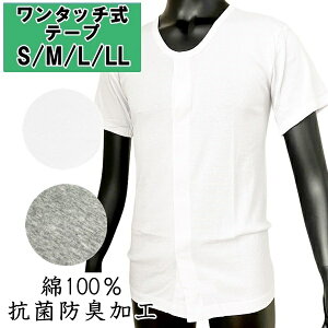 5枚セット 半袖【介護肌着】 メンズ 半袖 前開き シャツ 綿100% マジックテープで全開に 抗菌防臭加工