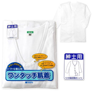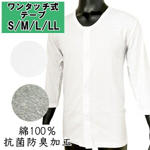 2枚組 7分袖シャツ 男性用 7分袖のシャツ 年間素材 綿100 フライス編み 抗菌防臭加工 マジックテープで全開に 着替えラクラク