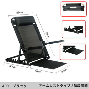 【商品仕様】ひじ掛け付き--色:ブラック、背もたれサイズ:50*55*26-64cm、クッションサイズ:38*38cm、重さ:3kg、耐荷重:200kg、コンパクトだけでなく軽量で、女性でも気軽に持ち運びできます。 【6段階調節】リク...