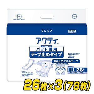 日本製紙クレシア 【業務用】 アクティ パッド併用テープ止めタイプ L-LLサイズ (総吸収量:約1250cc)26枚×3(78枚) サイズ ヒップサイズ:92〜125cm 材質 表面材:ポリオレフィン系不織布吸水材:綿状パルプ/吸収...