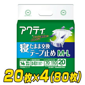 日本製紙クレシア アクティ 寝たまま交換テープ止め M-Lサイズ(吸収量4回分) 20枚×4(80枚) 適応サイズ ヒップサイズ:70-110cm 材質 表面材:ポリオレフィン系不織布吸水材:綿状パルプ、吸収紙、高分子吸収材防水材:ポ...