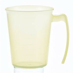 【介護用品:介護用コップ】 U字にカットの縁は傾けても鼻に当たらず、取っ手は取り外し可能で、前後左右自由な位置に設定できます。 半透明なので中味が見え、計量に便利な目盛もついています。