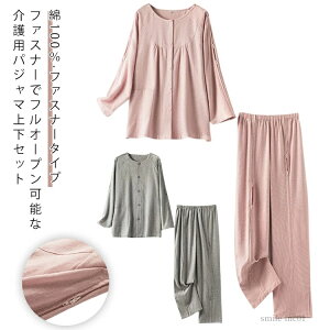 ファスナーでフルオープン可能な介護用パジャマ上下セット。【綿100%】【ファスナータイプ】【高品質の純綿素材】介護用パジャマは高品質の綿100%で作られており、柔らかくて肌に優しく、通気性と吸汗性に優れ...