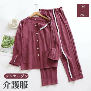 【全開パジャマ】体不自由な方や着替えが困難な方をサポートする全開介護用パジャマです。ウエストから裾まで、ワンタッチテープ、もしくはファスナーで全開フルオープン。寝たり座ったりの状態でも着脱が簡単。 【...