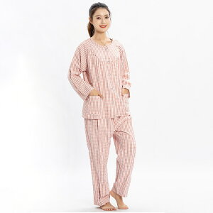 介護 患者衣 パジャマ 綿 脱ぎやすい 長袖 半袖 メンズ レディース チェック柄 黄色 紫 青 シンプル 入院 通気性 柔らかい ゆったり ポケット