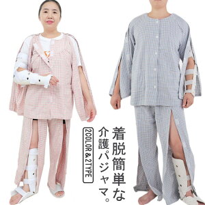 ファスナー全開とマジックテープ全開が選べる!着脱簡単な介護パジャマ。着替えが困難な方をサポートするためのパンツの介護全開ファスナー用パジャマです。ゆったり仕立てのトップと両脇ファスナーパンツで着替えもラクラクです。や