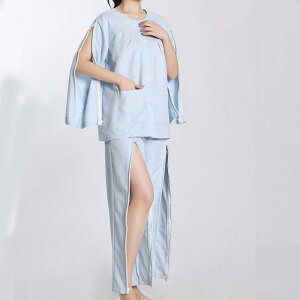患者着上下セット レディース メンズ介護用パジャマ 病衣 検診衣 検査衣 病院 患者衣 術後介護服 高齢者 ねまき 寝巻き 男女兼用 失禁ケアセット 男性用 女性用 大人 綿 ベルクロ式 長袖 ロング丈...
