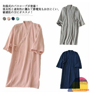 バスローブ ガーゼ レディース メンズ 浴衣 寝巻き 前開き 薄手 ガーゼ 綿 和風 パジャマ お風呂上り ねまき 部屋着 旅館 寝間着 入院着 介護