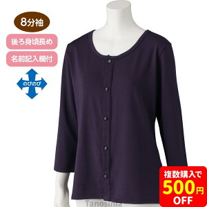 のびのびラクラク裏起毛8分袖ホックインナーの特徴・伸びる生地の裏起毛素材で暖かく快適な着心地、着脱もらくらく。●カラー/パープル・グレージュ●サイズ/S・M・L・LL●素材/ポリエステル90%・ポリウレタン10%●原産国/中国製●洗濯