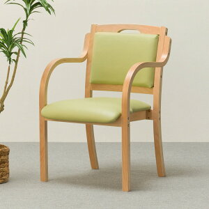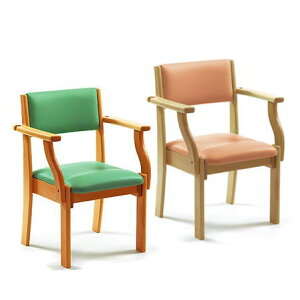 選択肢は【脚カラー/座面カラー】で表記しています。丸みのある優しい風合いのユニバーサルデザインチェア『カトレア』。柔らかなラインの肘は、しっかり握れるので座位を保持しやすくなっています。持ち手もあるので椅子の移動や引き