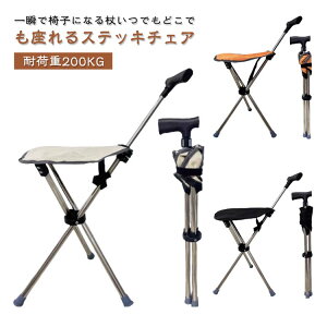 【2type選べる!】【耐荷重150kg】杖にも、ちょいかけ椅子にもできる1台で2役の軽量ステッキチェアステッキチェアは軽量で杖にも、折畳み式の三脚の椅子にもなるので便利です。歩くときは折りたたんで杖として、休む時はイスとして使用で