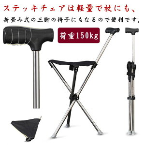 杖 ステッキチェア 折りたたみ 軽量 折り簡単 組立不要 三脚 ア