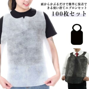 頭からかぶるだけで簡単に装着できる使い捨てエプロンセットお得な100枚セット。耐久性が高く、破れにくいだけでなく、肌に優しい不織布を使用しています。