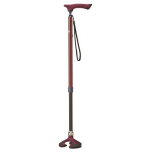 持ちやすい取っ手付きの杖です。このステッキは伸縮式で使う人の身長に合わせて10段階で高さ調節できます。3点脚で安定感があり自立するので、椅子に座っている時や買い物時などちょっとした時に手を離しても倒れず便利です。右手・左手両方使えるス...