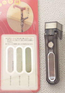 簡単に取り付けられるステッキホルダーです。 テーブルやカウンターの端に立て掛けられる優れものです。従来の「転ばぬ杖(杖の転倒防止)」をさらに小振りに、重さも約半減しスマートにな