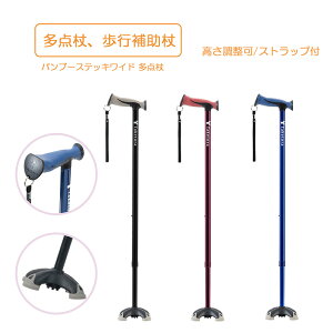 【商品様仕】 商品名: バンブーステッキワイド 多点杖 メーカー名: 竹虎 規格詳細: サイズ:Φ1.9/2.2×H68 〜 96cm(2.5cm きざみ・12 段階)、対応身長:目安130 〜 186cm、重量:470g 材質・原材...