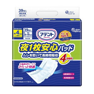 商品の仕様 ●サイズ/幅28×長さ49cm ●吸収量/600ml(最大吸収量/910ml) ●約4回分 ●枚数/1袋39枚 ●消臭機能付き ●医療費控除対象品 商品の説明 ・全面通気性シートでさらっと快適 ・1枚で一晩中モレ安心!ムレ...