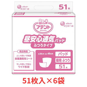 ・51枚入り×6袋 ●サイズ/幅28×長さ49cm ●吸収量/400cc(総吸収量約740cc) ・やわらかな通気性バックシート採用で、こまめに交換される方もお肌快適。 ・やわらかな通気性バックシート採用で、ムレを低減。 ・布のような...
