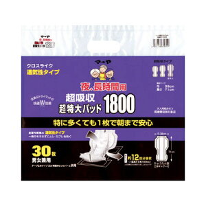 ●サイズ/幅32×長さ63cm ●吸水量/約1500cc(おしっこ約10回分) ●総吸水量/2000cc ●袋入数/30枚 ●日常生活動作レベル/5_寝て過ごす ・人気No.1の特大サイズに安心をプラス。朝まで交換なしでゆとり介護。 ...