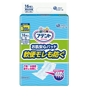 アテント 夜1枚安心パッド ムレを防いで長時間吸収 4回吸収 39枚 サイズ:28cm×49cm 尿吸収量:150mL(約4回分の吸収)。商品特徴・医療費控除対象商品・長時間安心の吸収力 ゆったり幅広設計で約4回分の尿をし