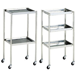 ●マツヨシ医療総合カタログ掲載商品●品番:MY-1019 ,規格:2段式 ,製品サイズ:W445×D325×H850mm ,詳細サイズ:《トレー内寸》390×270×40mm《有効棚間隔》430mm ,材質:ステンレス(SUS304)...