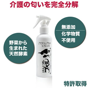 ご自宅でも!お出かけでも!便利な200ml 介護の匂いでお悩みの方に朗報です。 【特許取得】の野菜から生まれた天然酵素が、今まで消えなかった介護の悪臭を 完全分解します。 消臭効果はダイオキシンも分解するほど強力な悪臭分解能力!