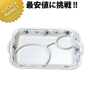 【業務用厨房機器のキッチンマーケット】ビューティフラワー角皿15.2インチ B仕切 BF-25 外寸 縦×横×高さ:378×278×H30mm材質:メラミン樹脂ブルー色の親しみやすい花のデザイン●耐熱温度120℃電子レンジ使用不可●耐...