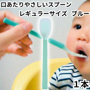 口あたりやさしいスプーン レギュラーサイズ(中) ブルー 【1本】 口元や歯茎へのあたりがやさしいスプーンです。 シリコンゴムの中にコシのあるナイロン樹脂の芯を埋め込んだ新しいスプーンです。 先端は柔らかなシリコンゴムを使用
