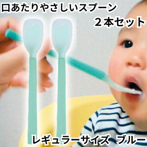口あたりやさしいスプーン レギュラーサイズ(中) ブルー 【2本】 口元や歯茎へのあたりがやさしいスプーンです。 シリコンゴムの中にコシのあるナイロン樹脂の芯を埋め込んだ新しいスプーンです。 先端は柔らかなシリコンゴムを使用
