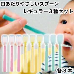 口あたりやさしいスプーン レギュラーサイズ【3種セット】各3本 合計9本 口元や歯茎へのあたりがやさしいスプーンです。 シリコンゴムの中にコシのあるナイロン樹脂の芯を埋め込んだ新しいスプーンです。 先端は柔らかなシリコンゴムを