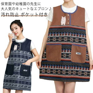 エプロン おしゃれ レディース 保育士 かぶりタイプ 無地 総柄 エプロン 幼稚園 介護士 看護師 大人用 かわいい 母の日 プレゼント ギフト M〜L