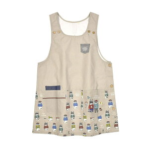 【両脇あきエプロン】アニマルモード 両脇がタブの釦あきになった脱ぎ着が楽なエプロン 脇のタブには釦が2つ付いているので身幅調節ができます 後ろ身頃は総柄プリント使いでイメージがガラリと変わります ■サイズ(cm):胸から裾まで70 着