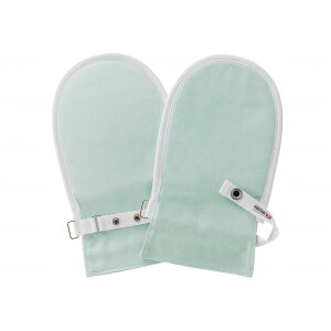 ご本人には外しにくい構造のアイデアホックを採用。危険な行為やおむついじりがみられるとき、一時的に使用することで医療行為や介護をサポートします。 両面綿タイプ。てぶくろの中はゆったりしているので、手指の動きを妨げません。