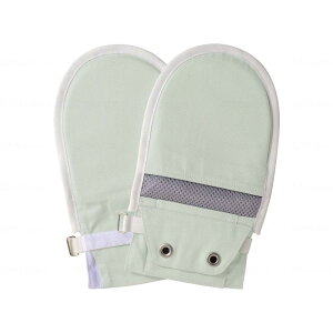 甲側が通気性に優れたメッシュ生地です。本人には外しにくい構造のアイデアホックを採用しています。危険な行為やおむついじりがみられるとき、一時的に使用することで医療行為や介護をサポートします。てぶくろの中はゆったりしてい