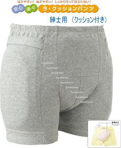 ラ・クッションパンツ 紳士用 付加機能 ゴム交換可能 クッション材に低反発軟質発泡体を使用 通気性立体メッシュ採用でムレ感を軽減 腰のラインに馴染み易いカーブ状のクッションで目立たない カラー...