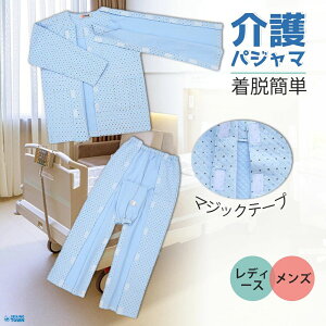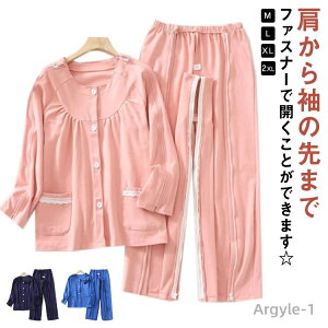 ファスナー全開とマジックテープ全開が選べる!着脱簡単な介護パジャマ。着替えが困難な方をサポートするためのパンツの介護全開ファスナー用パジャマです。ゆったり仕立てのトップと両脇ファスナーパンツで着替えもラクラクです。や