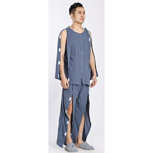 メンズ ワンタッチテープ+腰開きパジャマ / 紳士用 / 年間素材 / パジャマ / 介護 / 入院 / 高齢者 / ワンタッチテープ / 飾りボタン / 腰開き / おむつ交換 【CF】