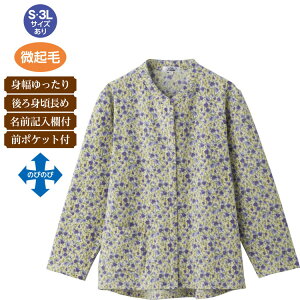 ◆着脱しやすい「あなたにやさしい」ブラウス◆ ひらっと柔らかいシルエットが女性らしく上品。 綿100%素材を使用 可愛らしい花柄デザイン